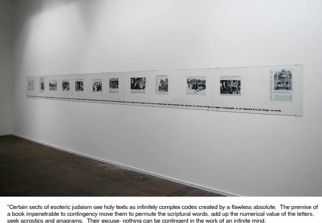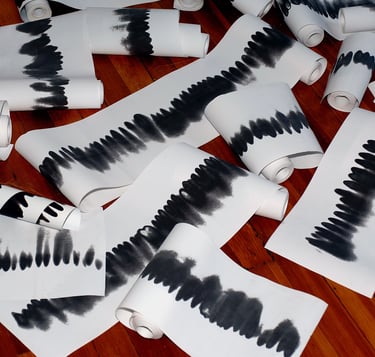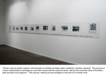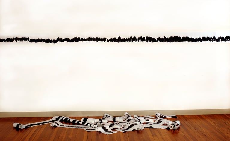 Yahrzeit is the annual memorial given to departed family members and loved ones in the Jewish faith. The yahrzeit candle is lit, accompanied by prayer, and allowed to burn, uninterrupted, until it extinguishes itself. This piece, created by exposing a roll of paper to the flame of a yahrzeit candle for twenty-four hours, attempts to graphically represent the duration of the Jewish memorial ritual. However, just as there is inevitably not enough space to display the more than 2000 feet of charred paper that accumulated during this process, there is not enough space in one’s mind to remember and reflect upon the totality of an individual who has been lost.