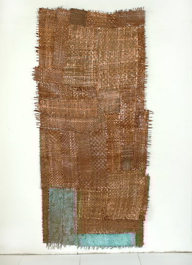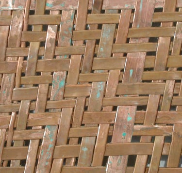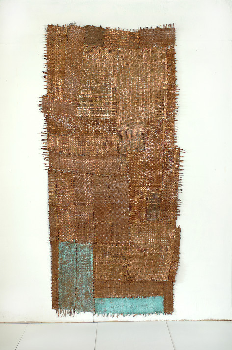 This piece, made of copper oxidized, cut and painstakingly woven by the artist was executed over several months in order to express the relationship between labor and duration. Although it is constructed from materials traditionally associated with men’s labor, the techniques utilized reflect the work’s intersection with the domestic, traditionally feminine sphere.