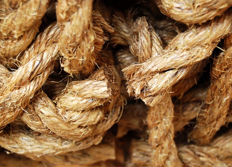A 150 pound sphere of solid manila rope is cleanly split in two, being held into place by the tensioning posts on either side. Referencing the Gordian knot of Alexandrian lore, Knot suggests the violence of contemporary American policies as well as the impossibility of restoring the body politic after it has been torn asunder.